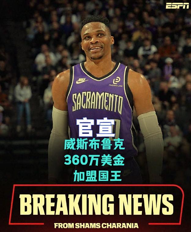 时间来到10月16日,15日深夜,NBA球星威斯布鲁克正式官宣,他将以360万美金的底薪加国王队。至此,他与CBA球队不断传出绯闻的闹剧终于宣告结束了。