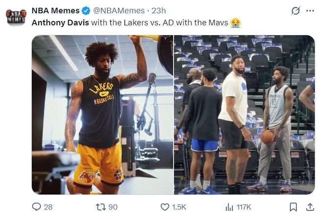 浓眉在的休赛期是魔鬼筋肉人一般的存在,而来到独行侠后一个休赛期就胖了14斤,受伤后更是失去了自律,目前是一个大胖子。