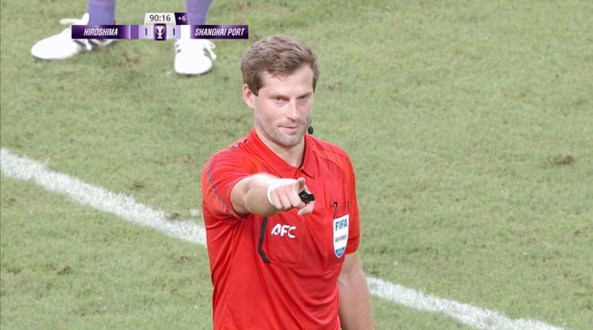 上海海港客场挑战广岛三箭,比赛来到常规时间的最后一分钟,上海海港后场断球准备快速反击,莱昂纳多一脚直塞找前场插上的古斯塔沃。古斯塔沃面对两人的夹防,为了快速摆脱防守,对抗中推倒了荒木隼人。