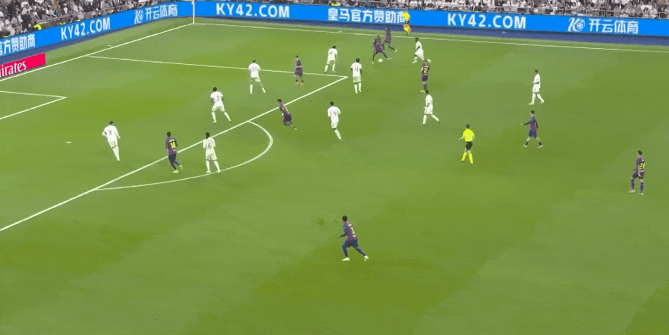 亚马尔前场强行突破,随后皮球被解围出底线